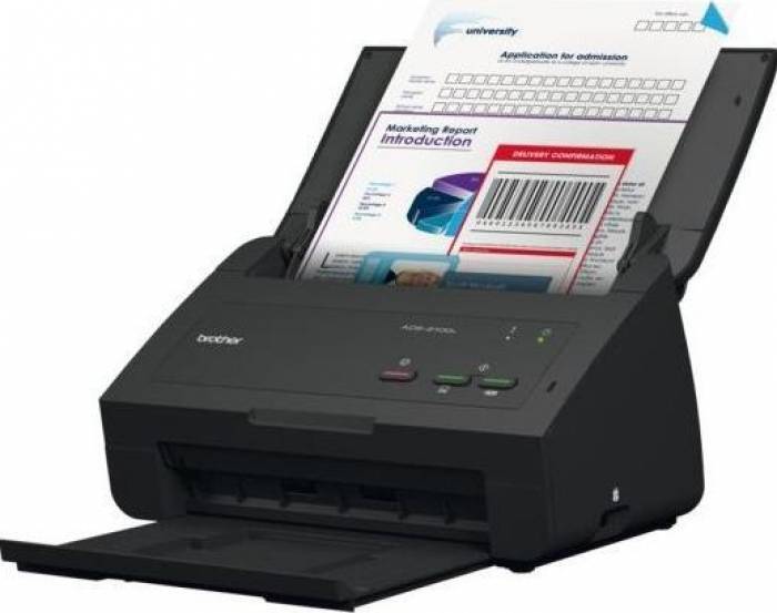 Scanner ADS2100EYJ1 Alimentator de documente | USB 2.0 High Speed | A4 | | 299 x 220 x 179 mm | Scanare către email, Image, OCR, File, USB | 1200 x 1200 DPI | 600 x 600 DPI | Scanare duplex | Tipuri şi dimensiuni: Plain Paper, Thin Paper, Thick Paper, Thicker Paper, Recycled Paper, Business Card, Plastic Card | Dimensiuni mediu ADF: Paper (multiple sheets): 51-215.9x70-355.6mm, Paper (single sheet): 51, 215.9x70x863mm, Plastic card: 85.6-54x0.76mm, Plastic card Thickness: 0.25-0.76mm | ADS2100EYJ1 | Brother